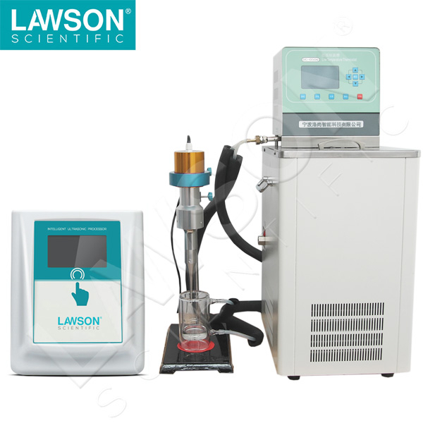 The double-layer crushing cup is used in conjunction with the ultrasonic cell pulverizer. It can be connected to a low temperature thermostat to cool the system and avoid changes in the sample due to the heating of the sample during the ultrasonic process. It is more convenient and more effective than the traditional ice bath.