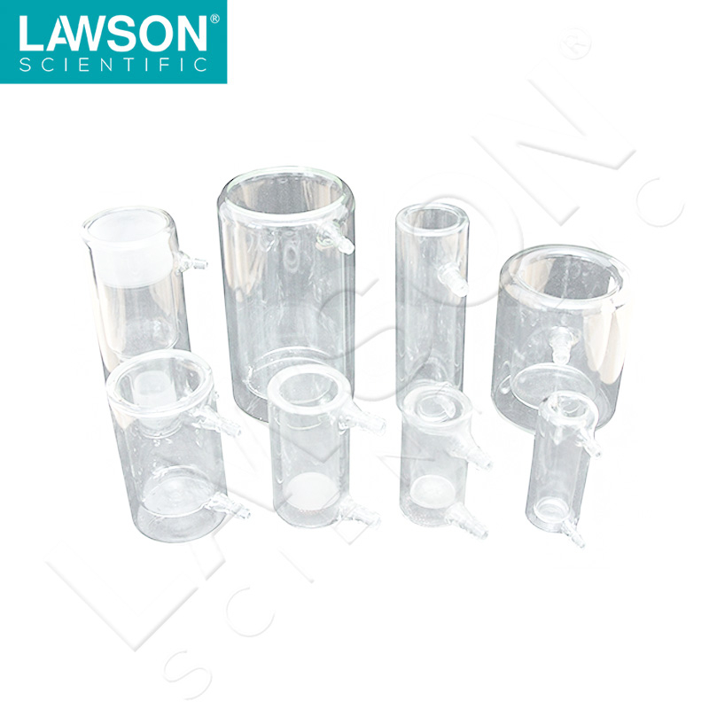 The double-layer crushing cup is used in conjunction with the ultrasonic cell pulverizer. It can be connected to a low temperature thermostat to cool the system and avoid changes in the sample due to the heating of the sample during the ultrasonic process. It is more convenient and more effective than the traditional ice bath.