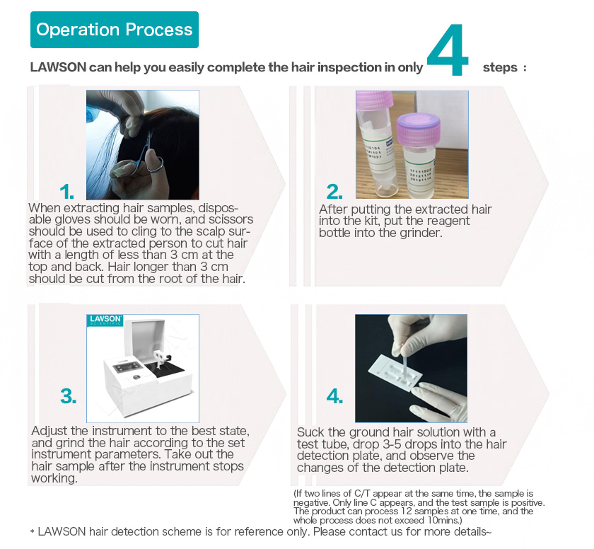 LAWSON DHFSTPRP-24 hair homogenizer a special vertical up-down integrated vibration mode is adopted, through the high-frequency reciprocating vibration, impact and shearing of grinding beads (zirconia, steel balls, glass beads, ceramic beads). The ideal grinding effect can be achieved quickly, so that the ground samples have more sufficient, more uniform, better sample repeatability, and no cross-contamination between samples. After grinding, the colloidal gold detection technology can be used for rapid on-site detection of common drugs (morphine, methamphetamine, ketamine, ecstasy, marijuana, etc.) in hair. The detection limits of various drugs have reached the requirements of the "Specifications for the Detection of Hair Samples of Drug-related Persons" issued by the Ministry of Public Security. The product has been widely recognized in the industry since its introduction. The advantages of high sensitivity and high sensitivity are currently very suitable for the hair drug detection equipment used by public security anti-drug law enforcement officers on the spot.
